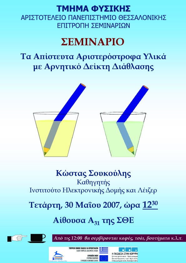 υλικά (ΑΥ) ή υλικά αρνητικού δείκτη διάθλασης, τα οποία, παρότι συνίστανται από συνήθη υλικά (μεταλλικά
