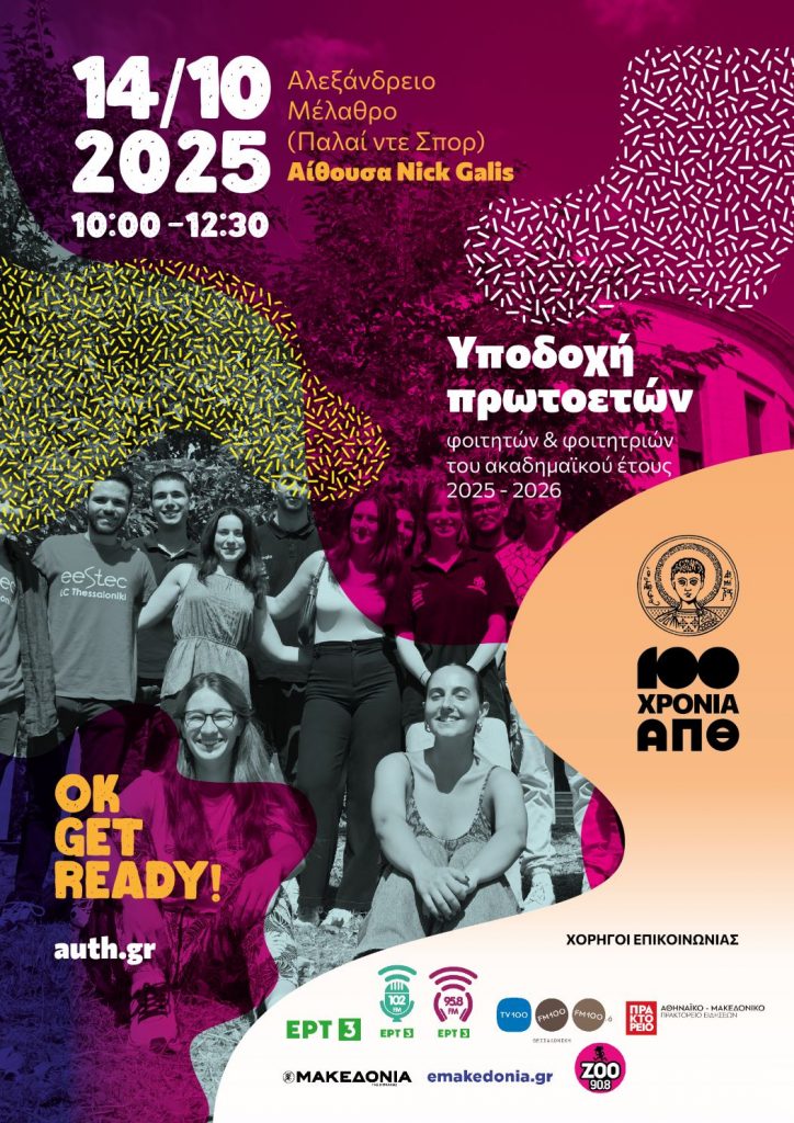 Σας ενημερώνουμε ότι την Τρίτη 14 Οκτωβρίου το Αριστοτέλειο Πανεπιστήμιο θα υποδεχθεί τους πρωτοετείς φοιτητές και φοιτήτριες του ακαδημαϊκού έτους 2025-2026 στο Παλαί ντε Σπορ.