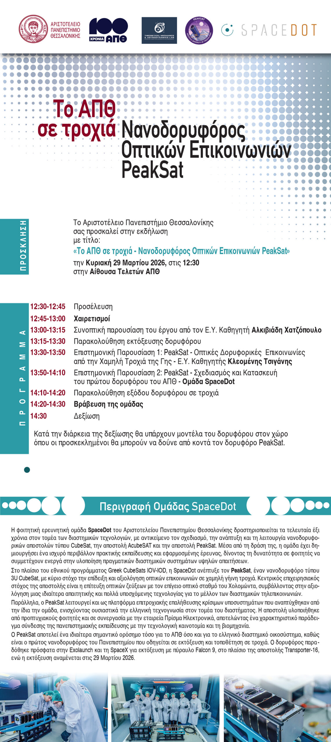 «Το ΑΠΘ σε τροχιά – Νανοδορυφόρος Οπτικών Επικοινωνιών PeakSat»